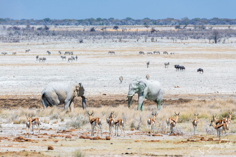 Le parc national d'Etosha constitue l'une des plus grandes réserves naturelles de la savane en Afrique, au centre de laquelle se trouve un grand pan de sel. Le parc est mondialement connu pour sa faune spectaculaire : éléphants, lions. Des léopards, des guépards, d'énormes troupeaux de springboks, de zèbres, de bubales et de gnous vivent ici. Une expérience particulière est la vue d'un des très rares rhinocéros noirs qui vivent encore ici.